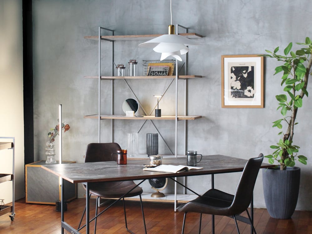 木とアイアンや女性的と男性的といった相反するものをミックスして共存させたデザインが得意で、使い込みなじんでいく経年変化が楽しめる家具が多いのもアデペシュの魅力です。