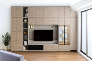 2000年代に入り取り組み始めたのは、ユニット式家具の製造です。ユーザーのニーズに合わせてユニットを組み合わせるスタイルは、キッチンボードから始まりTVボードなどへと拡大。カスタマイズ性の高い家具は、綾野製作所を特徴付ける要素の一つです。