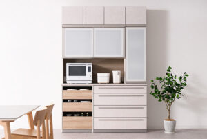 綾野製作所は、1960年に香川県丸亀市で創業した家具メーカーです。昭和レトロ感があると近年注目が高まる珠のれんなど、インテリア小物の製造から始めており、1970年代には家具の製造へと移行しました。1980年代に入ると現在の主力アイテムの一つである、キッチンボードの製造をスタートします。当時から家具で空間をコーディネートするという、先進的な志向を持つ先見性は、注目すべきところでしょう。