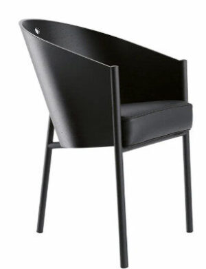 コステスは、フィリップ・スタルクが手がけた三本脚のデザインチェアです。洗練されたカフェスタイルが魅力で、木製の湾曲シェルとレザーの座面、スチール脚の組み合わせが印象的です。インテリアに落ち着いた高級感をもたらし、世界中のデザインファンから支持される名作としても知られています。中古市場においても、レザーの状態が良好なものは高値がつくこともあります。