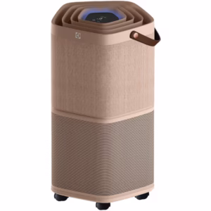 五角柱のボディやファブリック、レザー調ハンドルを採用するなど、インテリアに馴染む空気清浄機です。空気中のウィルスを99%除去する、空気の状態をリアルタイムで計測するなど、本来の機能も他のメーカーのものに引けを取りません。