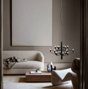2097は、1958年にジノ・サルファッティが手がけた、多数の電球が放射状に並んだインパクト抜群のシャンデリアです。18灯・30灯・50灯のサイズ展開があり、真鍮やステンレスなど素材の違いも楽しめます。モダンとクラシックを融合した美しい佇まいは、空間の主役になる存在感があります。中古市場では、大型サイズや美品モデルは買取価格が上がりやすい傾向です。