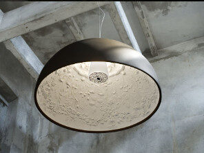 Skygardenは、マルセル・ワンダースがデザインした、内側に美しい装飾が施されたペンダントライトです。外側はシンプルな半球型ですが、内側には天井彫刻のような繊細なプラスター装飾が隠されており、点灯時には幻想的な陰影を生み出します。アルミニウム仕上げのシェードは高級感があり、インテリアに上質なアクセントを加えてくれる一品です。中古では、装飾部分の欠けや塗装の剥がれが査定のポイントとなり、高価買取につながる可能性があります。