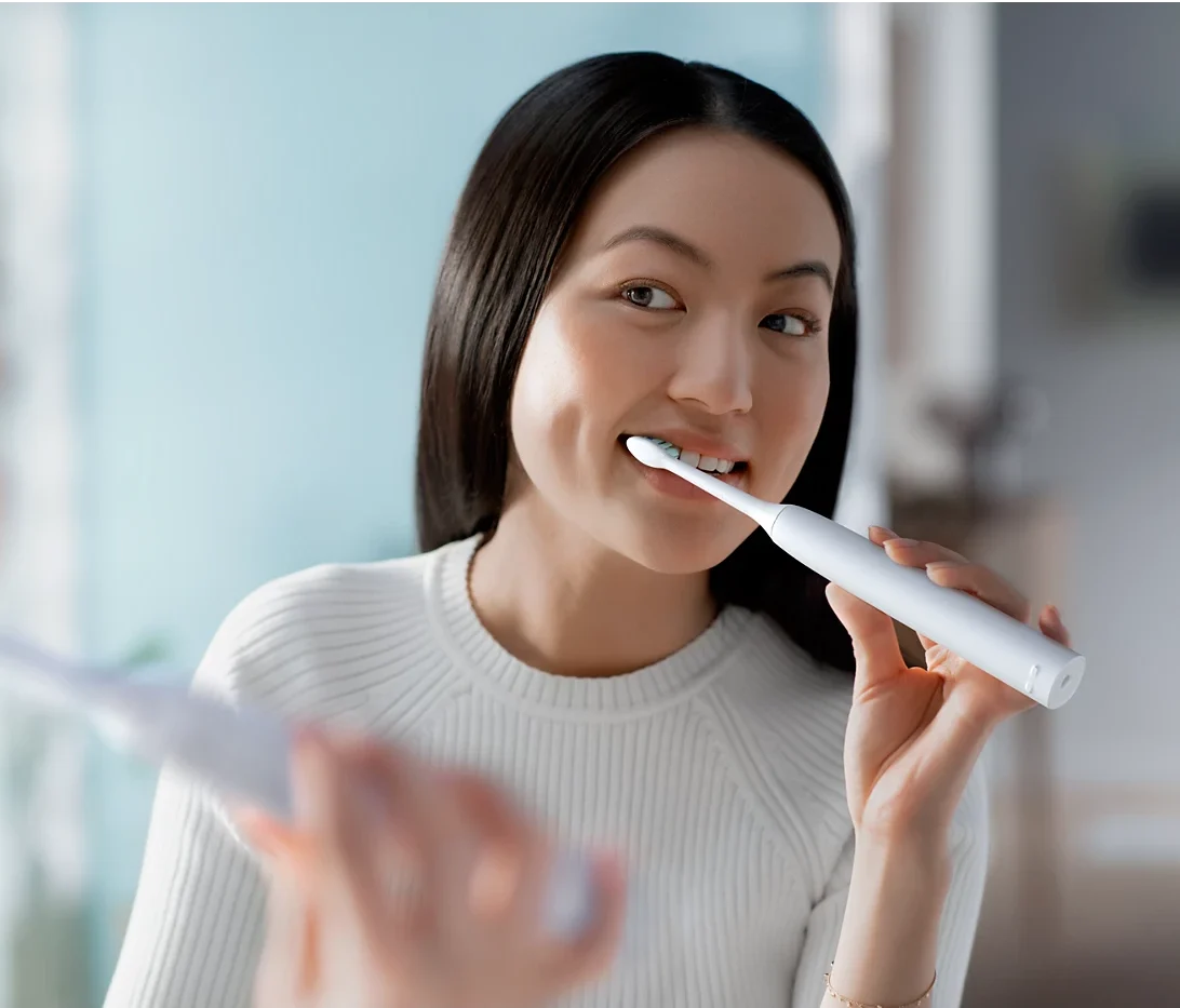 ソニッケアーの電動歯ブラシは、毎分約31,000回の高速振動と幅広い振れ幅により、口の中の唾液の流れとなる音波水流を発生させ、効果的に歯垢を除去します。ブラッシングが強すぎると過圧防止センサーがパルス音でお知らせし、歯ブラシの振動を自動的に抑えます。また口腔内を一定の間隔でブラッシングできるよう、30秒ごとにビープ音でお知らせしサポートするカドペーサー機能や、2分間でブラッシングが停止する、スマートタイマー機能付きです。