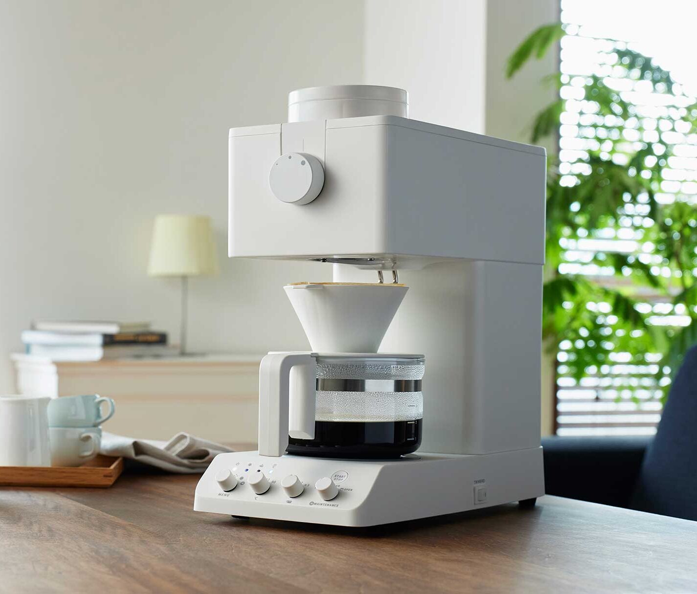 “コーヒー界のレジェンド“といわれる田口護氏監修のもと開発された全自動コーヒーメーカーです。豆の風味を損なわない低速臼式フラットミルと、6方向からお湯を注ぐシャワードリップでプロのハンドドリップを再現。カラーはホワイトとブラック、容量は3杯用と6杯用の2種類から選べます。ミルは着脱式なのでお手入れもしやすくなっています。
