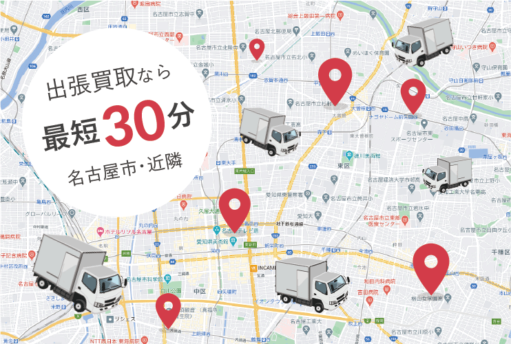 ご連絡いただければ即日・最短30分で駆けつけるステップの軽さも、買取いちばんドットコムが選ばれている理由です。常に名古屋市内を巡回している弊社の専用トラックが、スピーディにご指定の場所まで査定にうかがいます。