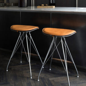 黒のソフトレザーがシックな印象のチェアで、ホームバーはもちろん、数が揃えばカフェやバーでも重宝します。飽きのこないオーソドックスなデザインで、座面がゆったりしていて座り心地のよいカウンターチェアです。