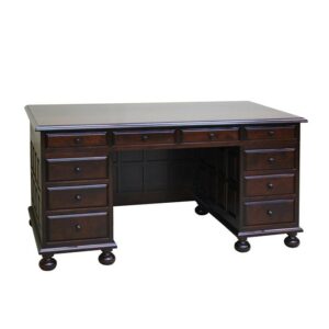 ハンドメイドで丁寧に作り上げられている松本民芸机の中で最も重厚感がある両袖机は、側面や背面まで飾り加工が施されています。幅は約151cmありますが、天板や両袖がはずれる組み立て式になっているため、買取の時もスムーズに搬出することが可能です。