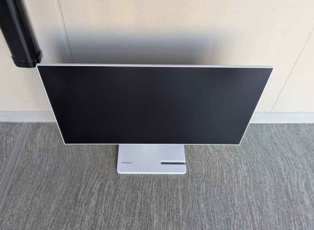 実際の状態を確認すると、画面の傷や映りムラもなく、背面やフレームのスレも最小限で非常に良好でした。