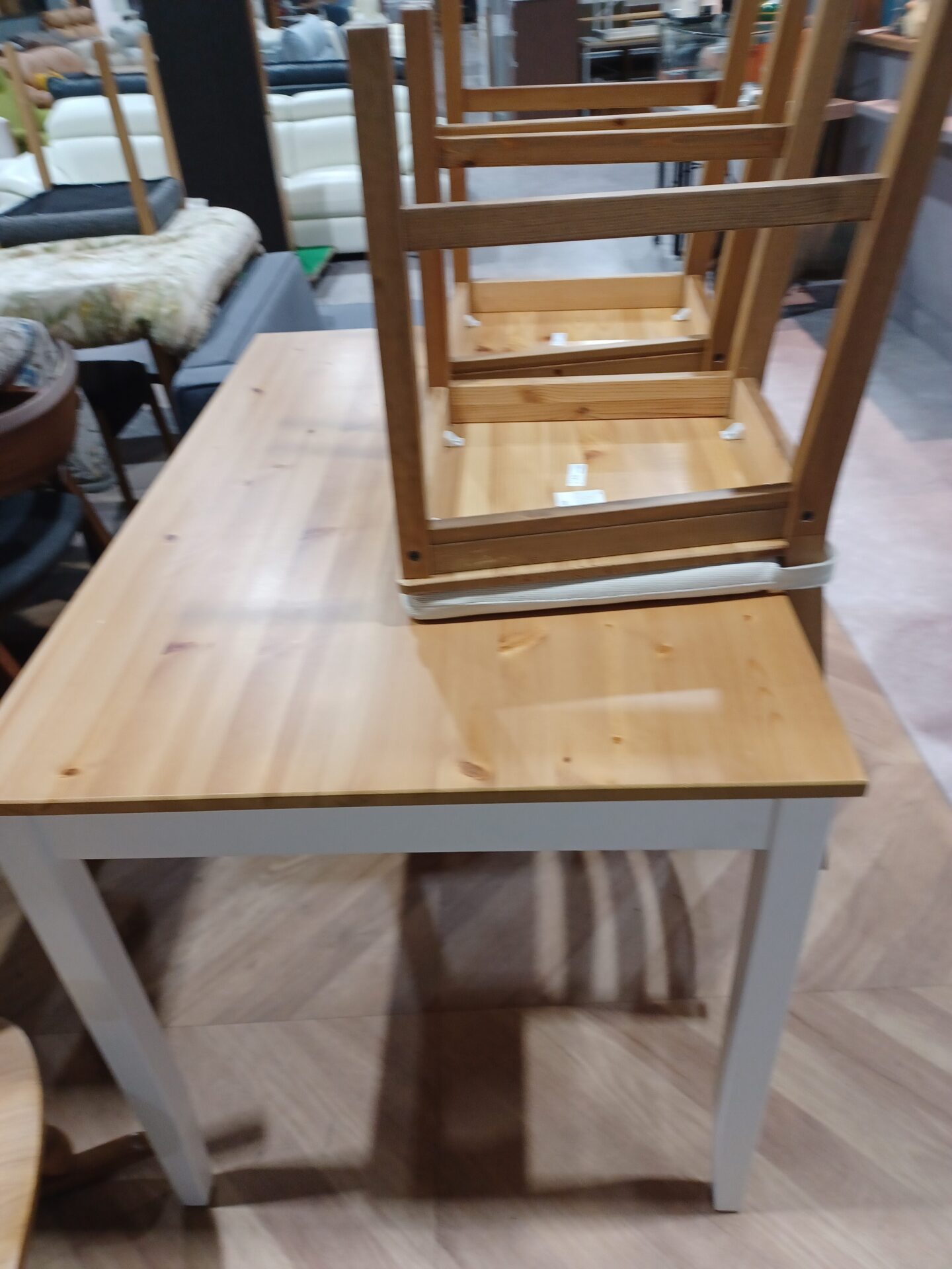 今回拝見した「IKEA レールハムン ダイニング3点セット」は、比較的使用年数がありながらも天板の大きな傷が少なく、チェアの座面も破れやガタつきが見受けられない良好な状態でした。