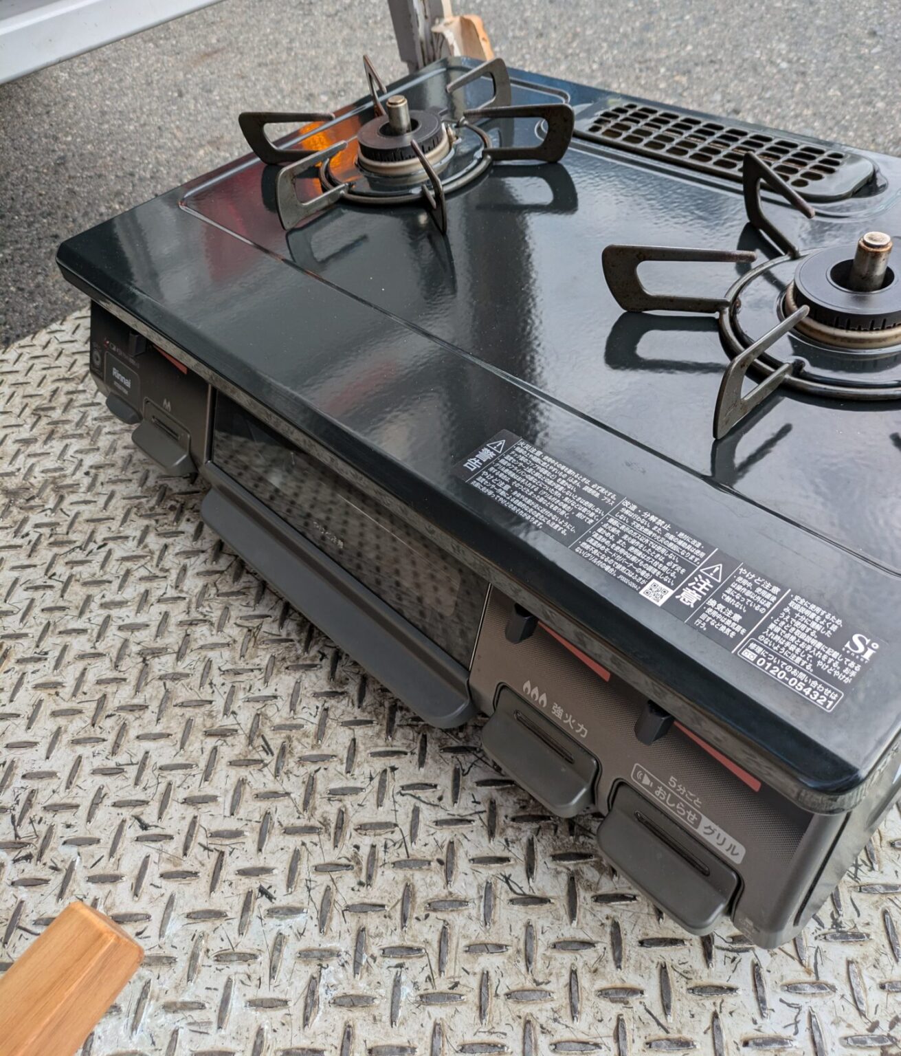 バーナーや五徳部分の状態も良好で、点火・火力調整・グリル機能ともに動作確認を行い、いずれも問題ありません。